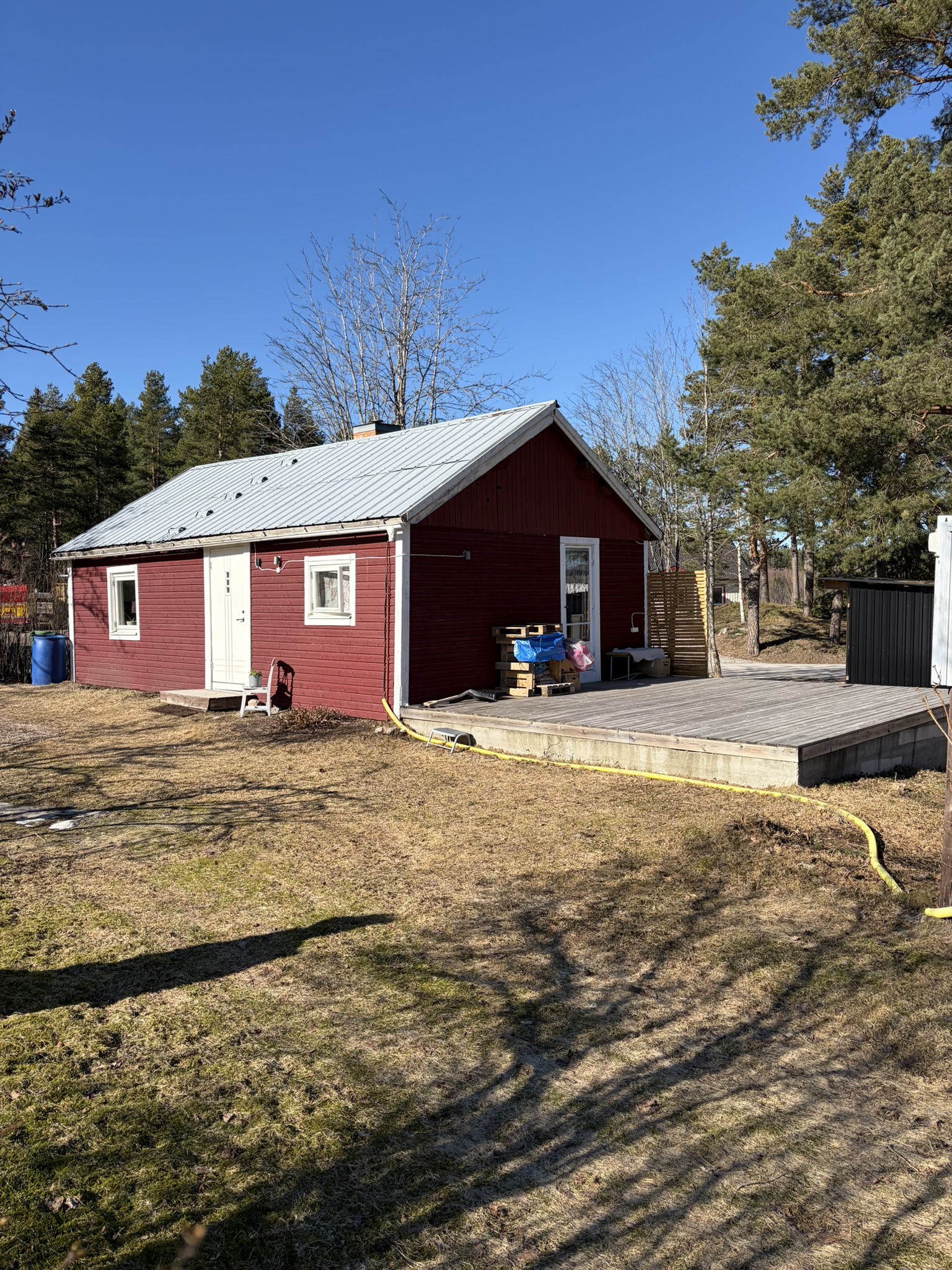 Mindre hus med egen trädgård i lantlig men central miljö. Ca 10 minuter cykelavstånd till resecenter i Njurundabommen, 10 minuter bilväg till centrala Sundsvall. Nya ytskikt och nytt kök 2017. Stort kök med kombitvättmaskin, mikrougn, intregrerad kyl/frys, spis, vedspis.(kamin i kök ej i bruk ) Nya fönster i sovrum, vardagsrum o kök. Wc med dusch, vardagsrum med öppen spis , Vardagsrum med glasad dörr till stor altan på ca 5x5 meter. Mindre hall samt mindre sovrum. Två förråd finns på tomten, ett modernare och ett äldre, ca 10+10 m2. Stor tomt med syrenträd, äppelträd mm samt en stor ek. Hyra inkluderar el, elnät, bredband 250, sopor, vatten och avlopp. Kreditprövning och referenser tages. Eftersom det är ett eget hus med trädgård så förväntas hyresgäst sköta gräsklippning och snöskottning, dvs normal trädgårdsskötsel. Sophantering ingår i hyran, tömning varannan måndag jämn vecka. Varmt hus trots att det är gammalt. Löpande underhåll sker av hyresvärd. Bilderna är blandade från tidigare hyresgäster, garderob är monterad i kök samt kombimaskin ( tvätt/tork), sovrum har två mindre garderober. Planlösning finns redovisad i bild.