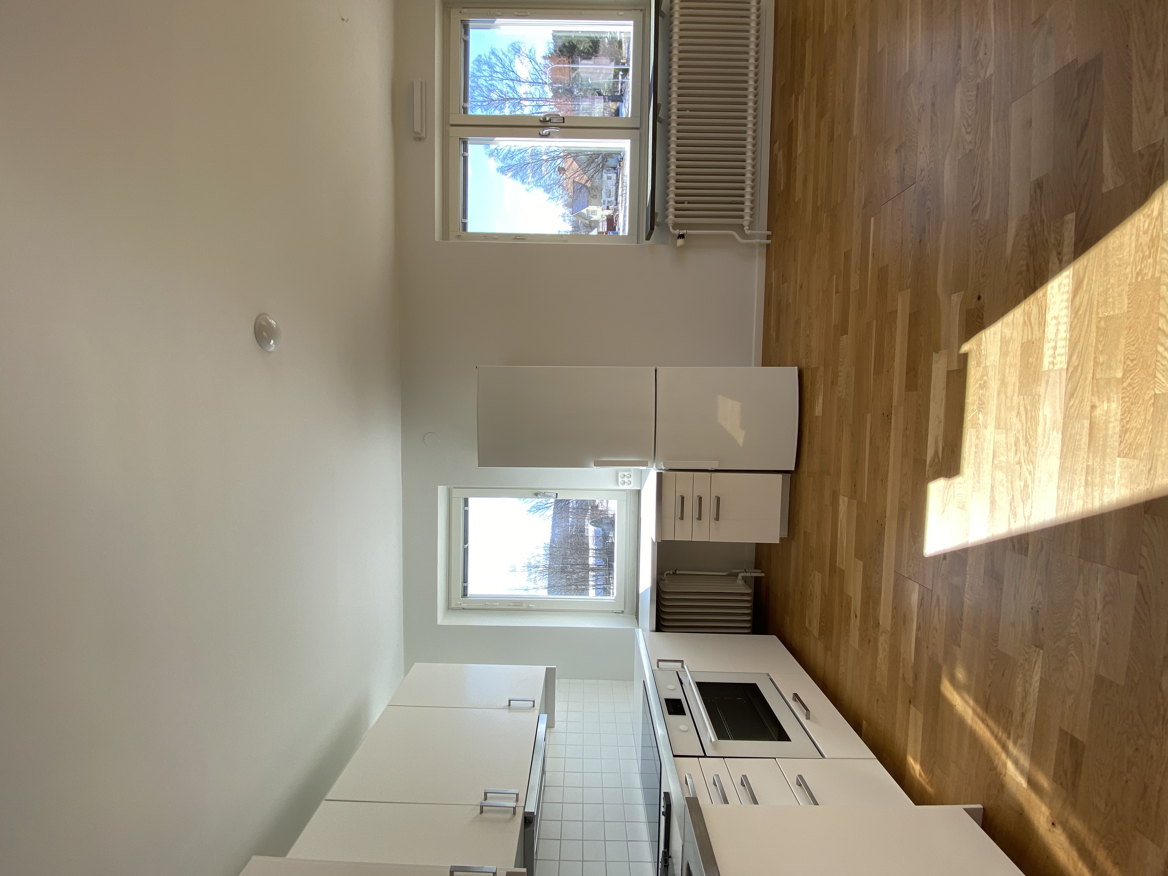 Öppen och ljus lägenhet med rymligt kök/allrum. Stort sovrum med många garderober. Vitmålade väggar och parkettgolv, nytt kök med vita luckor, och helkaklat badrum med tvättmaskin med torktumlare. Tvättstuga i annat hus på gården. Nära till affär och skola. Goda bussförbindelser, hållplats precis utanför fastigheten. Öppet fiber finns.